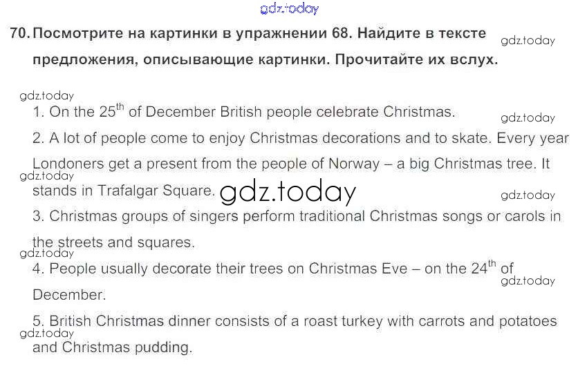 На страницах сайта gdz.today вы найдете учебный и вспомогательный материал, направленный на улучшения знаний школьной программы. ГДЗ - онлайн мир знаний Решение к Unit 2. We are going to travel to London 70 Учебнику по Английскому языку для 5 класса Биболетова, Денисенко Титул Enjoy English 2015