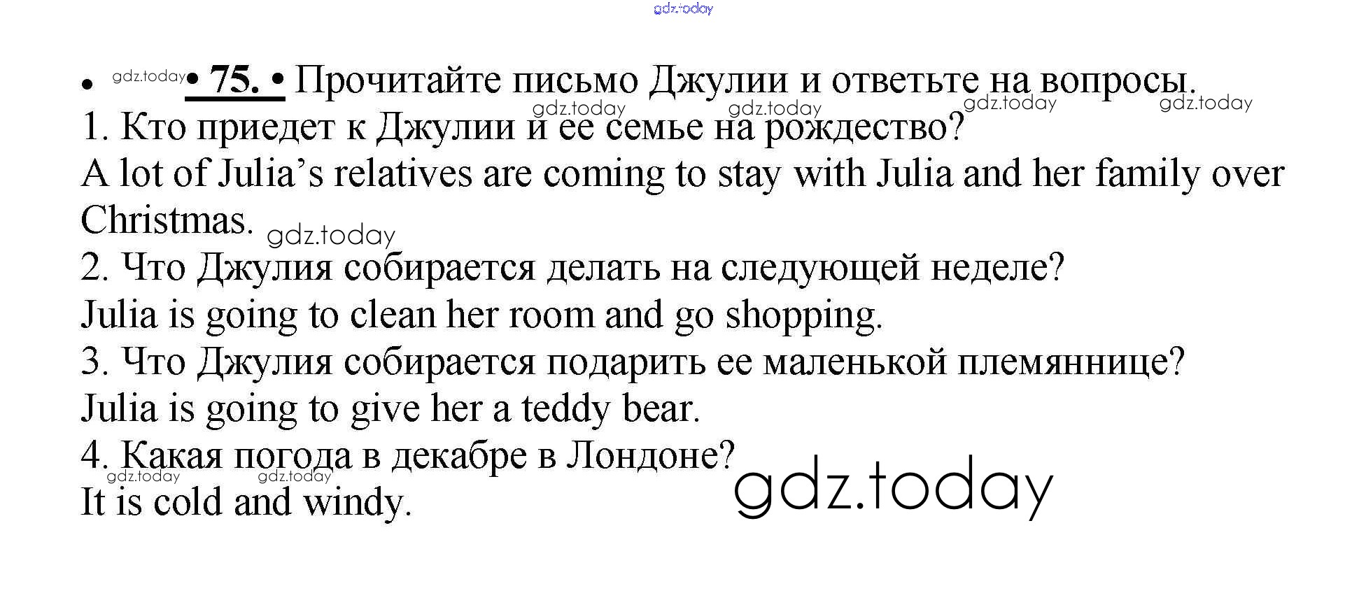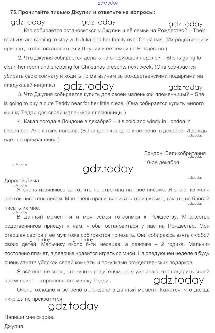 На страницах сайта gdz.today вы найдете учебный и вспомогательный материал, направленный на улучшения знаний школьной программы. ГДЗ - онлайн мир знаний Решение к Unit 2. We are going to travel to London 75 Учебнику по Английскому языку для 5 класса Биболетова, Денисенко Титул Enjoy English 2015