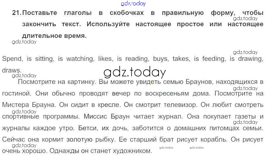 На страницах сайта gdz.today вы найдете учебный и вспомогательный материал, направленный на улучшения знаний школьной программы. ГДЗ - онлайн мир знаний Домашняя работа Решение к Unit 3. Faces of London 21 Учебнику по Английскому языку для 5 класса Биболетова, Денисенко Титул Enjoy English 2015