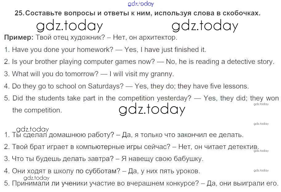 На страницах сайта gdz.today вы найдете учебный и вспомогательный материал, направленный на улучшения знаний школьной программы. ГДЗ - онлайн мир знаний Домашняя работа Решение к Unit 3. Faces of London 25 Учебнику по Английскому языку для 5 класса Биболетова, Денисенко Титул Enjoy English 2015
