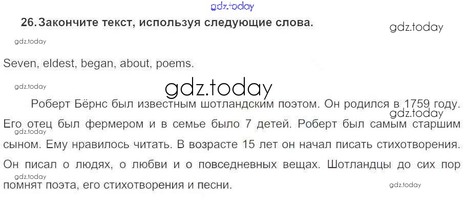 На страницах сайта gdz.today вы найдете учебный и вспомогательный материал, направленный на улучшения знаний школьной программы. ГДЗ - онлайн мир знаний Домашняя работа Решение к Unit 3. Faces of London 26 Учебнику по Английскому языку для 5 класса Биболетова, Денисенко Титул Enjoy English 2015
