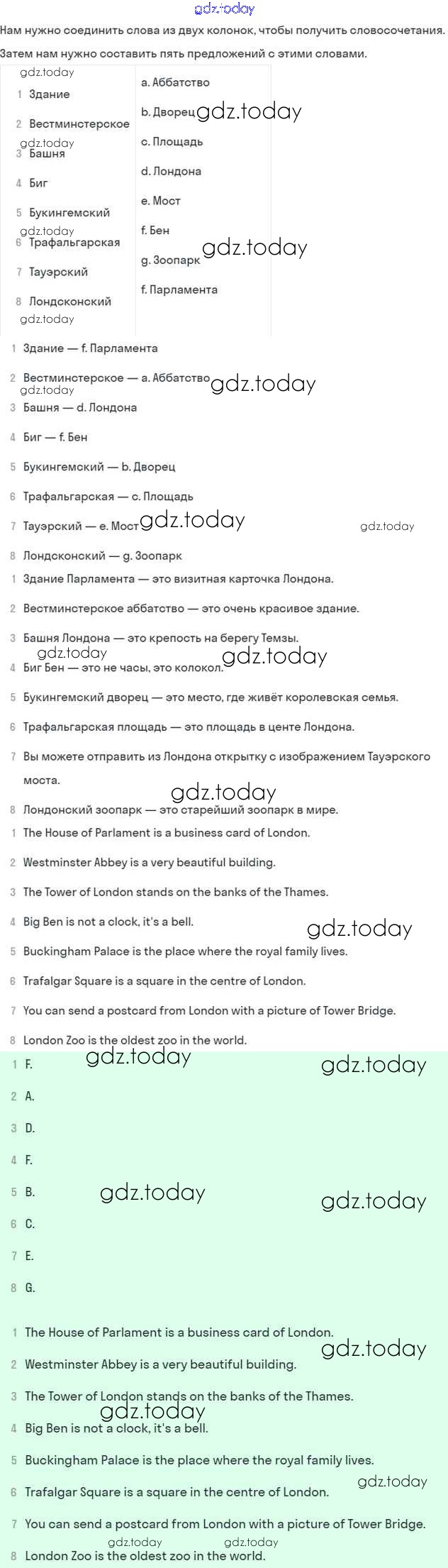 Ответы к Домашняя работа Решение к Unit 3. Faces of London 7 Учебнику по Английскому языку для 5 класса Биболетова, Денисенко Титул Enjoy English 2015