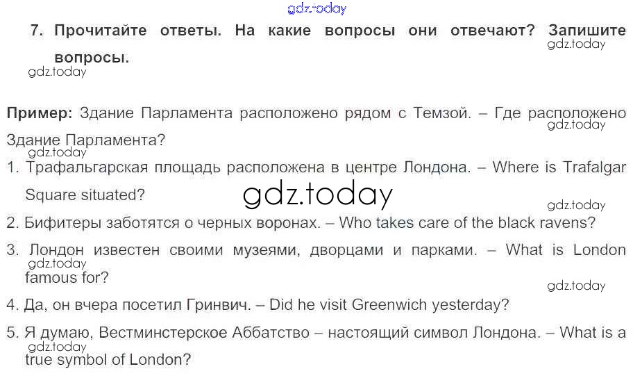 На страницах сайта gdz.today вы найдете учебный и вспомогательный материал, направленный на улучшения знаний школьной программы. ГДЗ - онлайн мир знаний Домашняя работа Решение к Unit 3. Faces of London 7 Учебнику по Английскому языку для 5 класса Биболетова, Денисенко Титул Enjoy English 2015