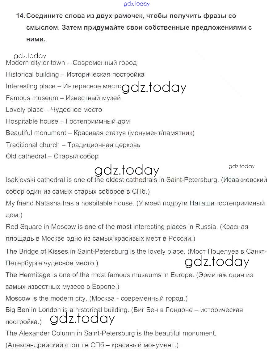 Ответы к Решение к Unit 3. Faces of London 14 Учебнику по Английскому языку для 5 класса Биболетова, Денисенко Титул Enjoy English 2015