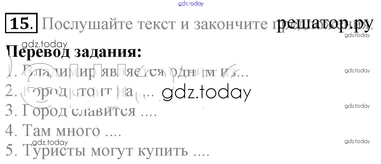 На страницах сайта gdz.today вы найдете учебный и вспомогательный материал, направленный на улучшения знаний школьной программы. ГДЗ - онлайн мир знаний Решение к Unit 3. Faces of London 15 Учебнику по Английскому языку для 5 класса Биболетова, Денисенко Титул Enjoy English 2015