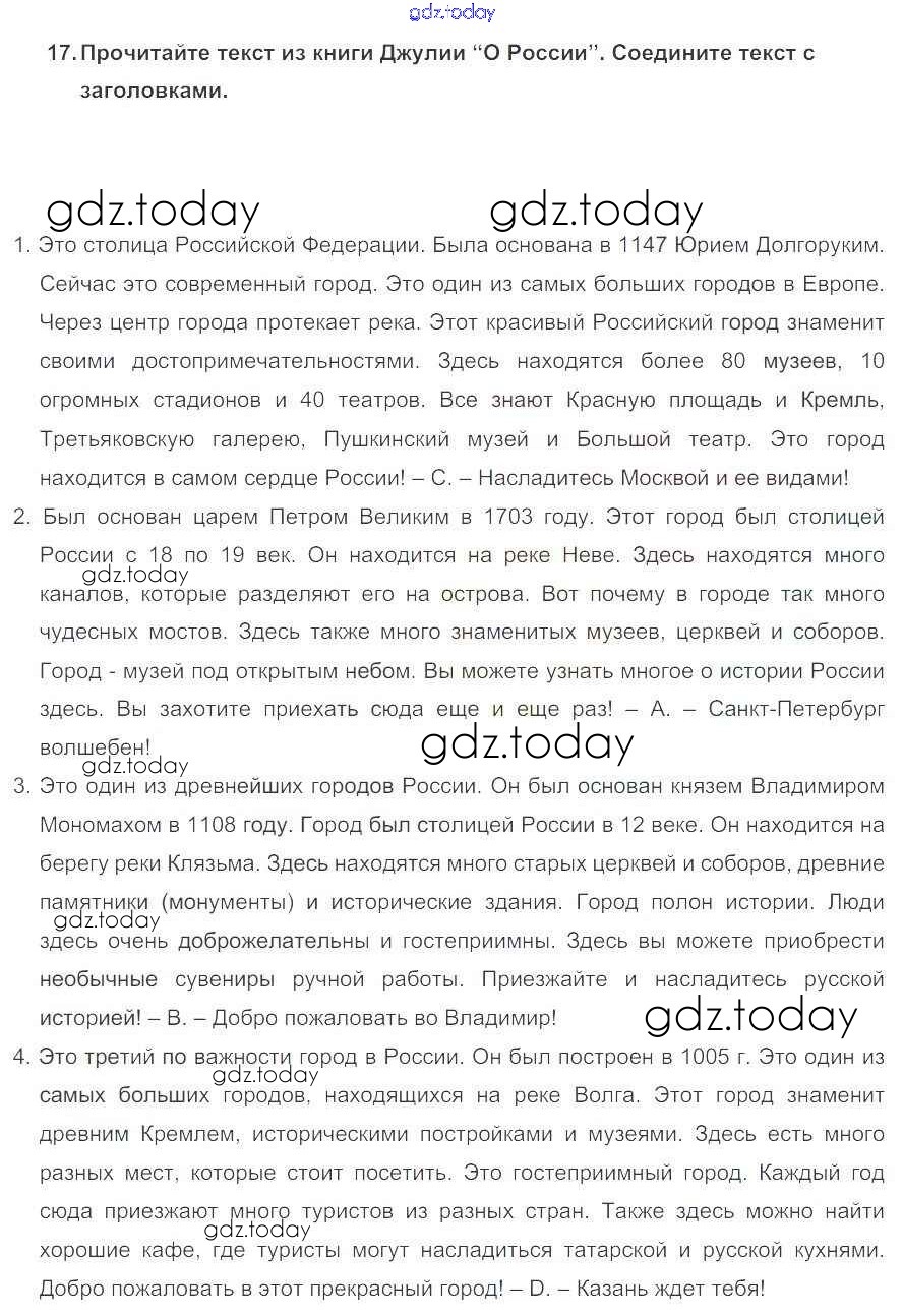 На страницах сайта gdz.today вы найдете учебный и вспомогательный материал, направленный на улучшения знаний школьной программы. ГДЗ - онлайн мир знаний Решение к Unit 3. Faces of London 17 Учебнику по Английскому языку для 5 класса Биболетова, Денисенко Титул Enjoy English 2015