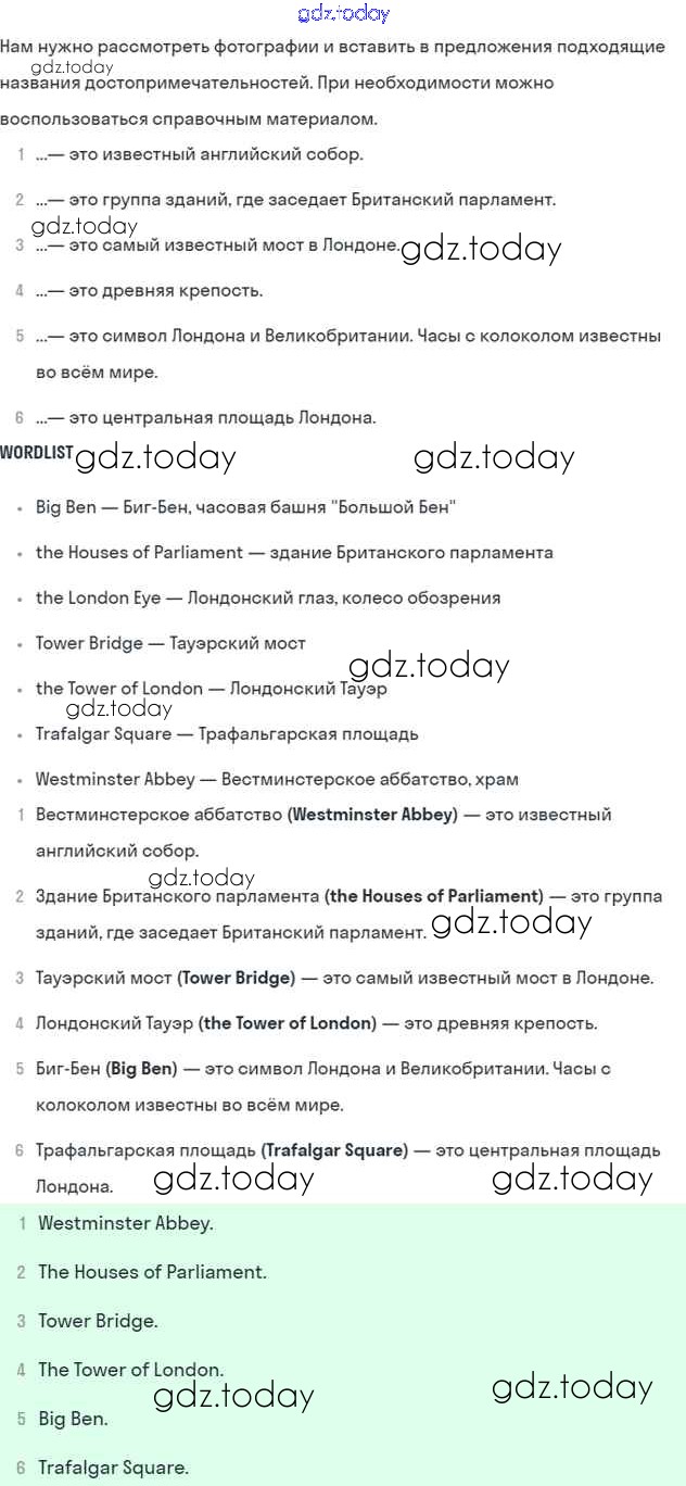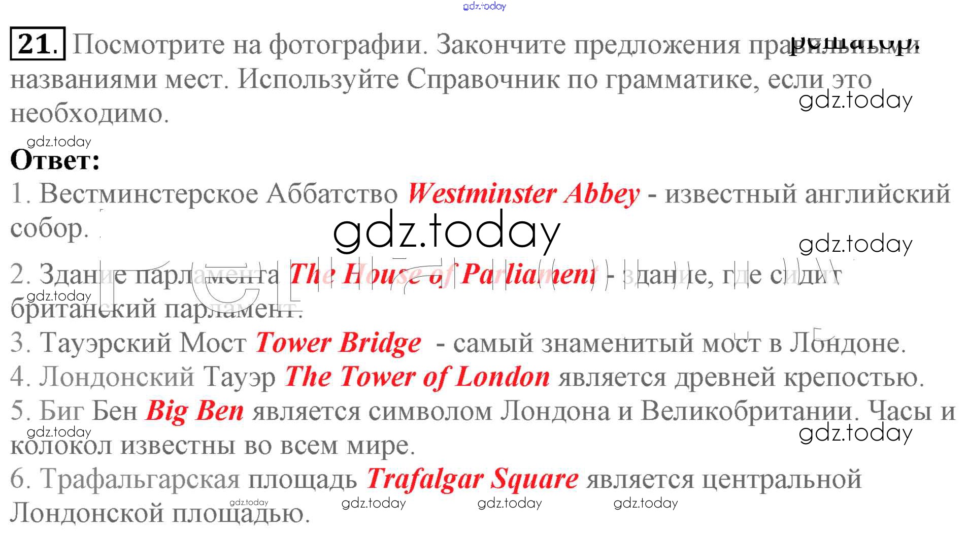На страницах сайта gdz.today вы найдете учебный и вспомогательный материал, направленный на улучшения знаний школьной программы. ГДЗ - онлайн мир знаний Решение к Unit 3. Faces of London 21 Учебнику по Английскому языку для 5 класса Биболетова, Денисенко Титул Enjoy English 2015