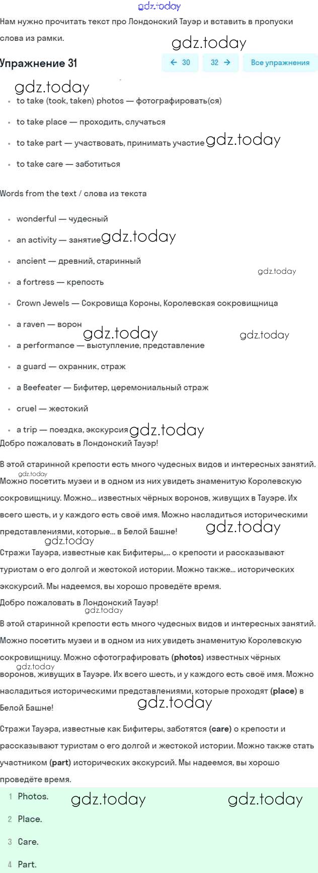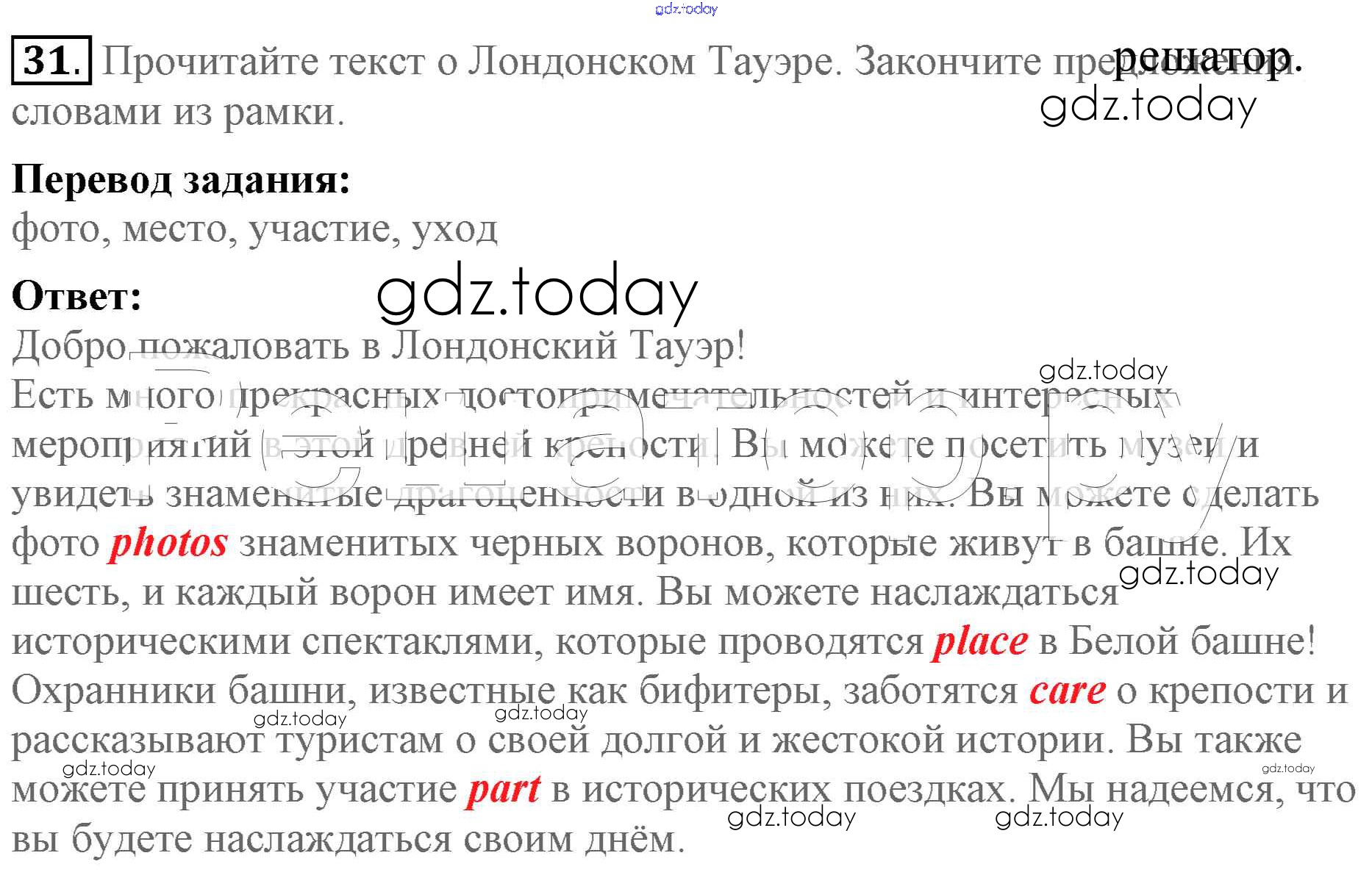 На страницах сайта gdz.today вы найдете учебный и вспомогательный материал, направленный на улучшения знаний школьной программы. ГДЗ - онлайн мир знаний Решение к Unit 3. Faces of London 31 Учебнику по Английскому языку для 5 класса Биболетова, Денисенко Титул Enjoy English 2015