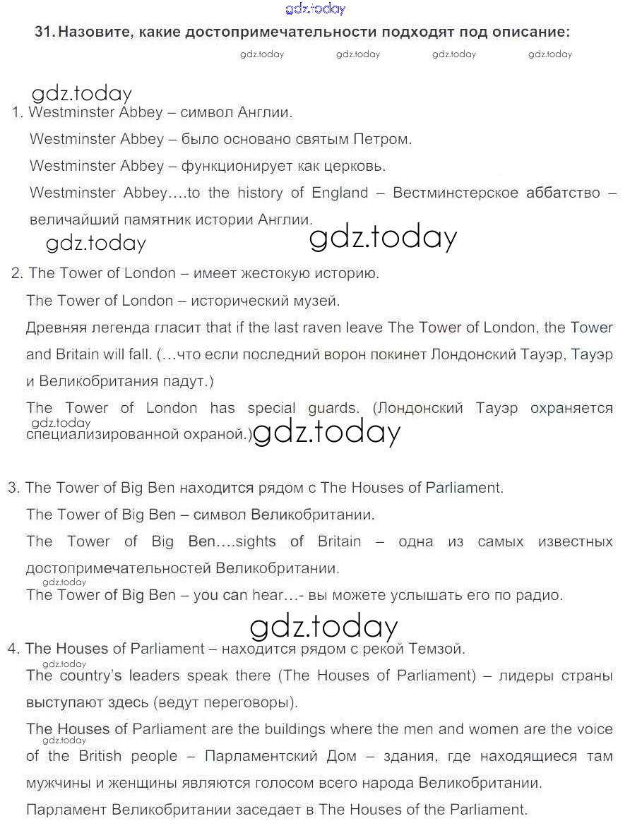 Ответы к Решение к Unit 3. Faces of London 31 Учебнику по Английскому языку для 5 класса Биболетова, Денисенко Титул Enjoy English 2015