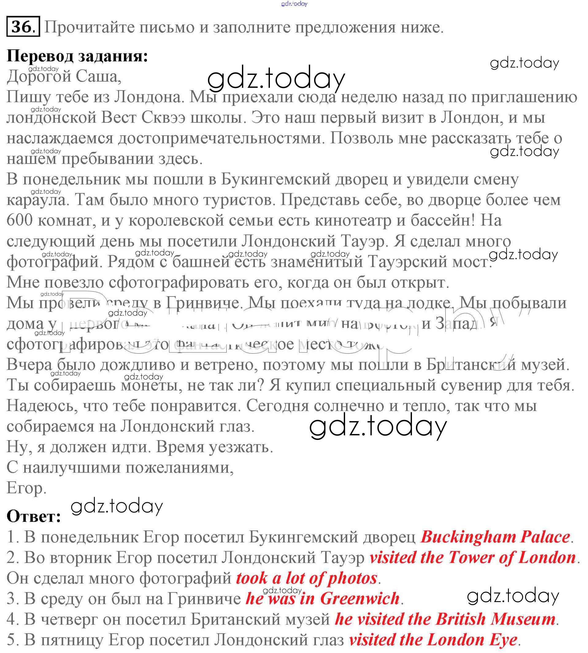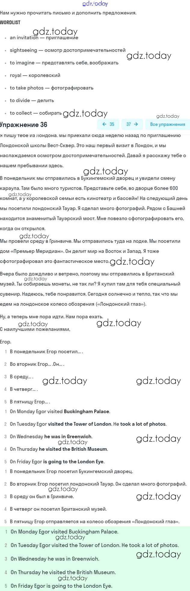 На страницах сайта gdz.today вы найдете учебный и вспомогательный материал, направленный на улучшения знаний школьной программы. ГДЗ - онлайн мир знаний Решение к Unit 3. Faces of London 36 Учебнику по Английскому языку для 5 класса Биболетова, Денисенко Титул Enjoy English 2015