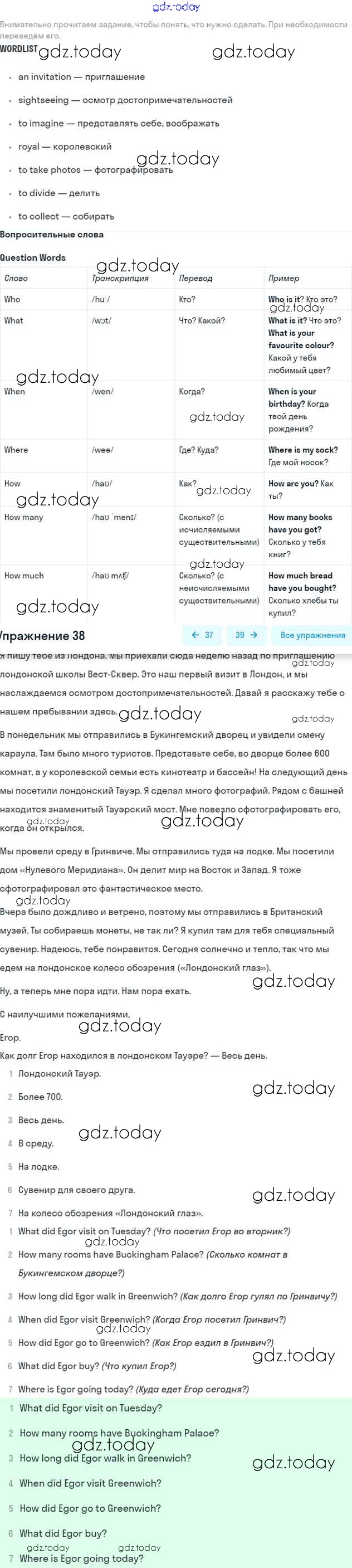 На страницах сайта gdz.today вы найдете учебный и вспомогательный материал, направленный на улучшения знаний школьной программы. ГДЗ - онлайн мир знаний Решение к Unit 3. Faces of London 38 Учебнику по Английскому языку для 5 класса Биболетова, Денисенко Титул Enjoy English 2015