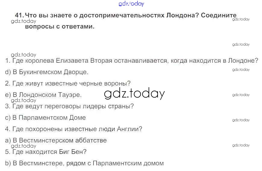 Ответы к Решение к Unit 3. Faces of London 41 Учебнику по Английскому языку для 5 класса Биболетова, Денисенко Титул Enjoy English 2015