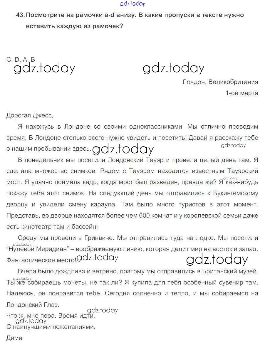 Ответы к Решение к Unit 3. Faces of London 43 Учебнику по Английскому языку для 5 класса Биболетова, Денисенко Титул Enjoy English 2015