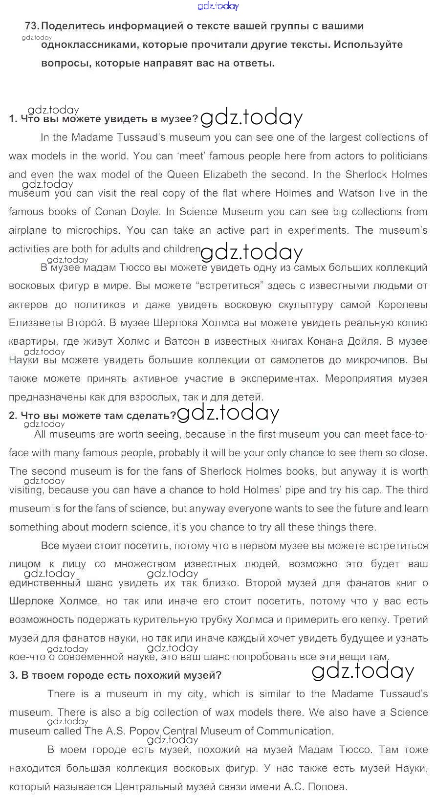 На страницах сайта gdz.today вы найдете учебный и вспомогательный материал, направленный на улучшения знаний школьной программы. ГДЗ - онлайн мир знаний Решение к Unit 3. Faces of London 73 Учебнику по Английскому языку для 5 класса Биболетова, Денисенко Титул Enjoy English 2015