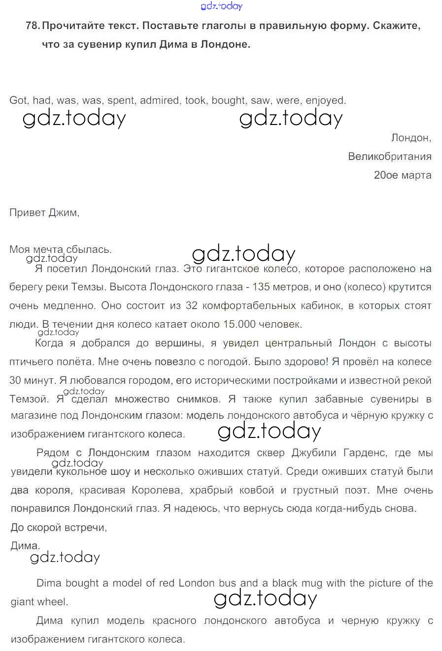 На страницах сайта gdz.today вы найдете учебный и вспомогательный материал, направленный на улучшения знаний школьной программы. ГДЗ - онлайн мир знаний Решение к Unit 3. Faces of London 78 Учебнику по Английскому языку для 5 класса Биболетова, Денисенко Титул Enjoy English 2015