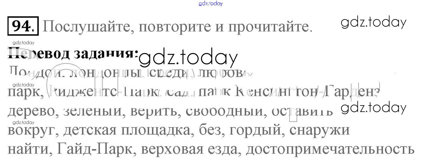 На страницах сайта gdz.today вы найдете учебный и вспомогательный материал, направленный на улучшения знаний школьной программы. ГДЗ - онлайн мир знаний Решение к Unit 3. Faces of London 94 Учебнику по Английскому языку для 5 класса Биболетова, Денисенко Титул Enjoy English 2015