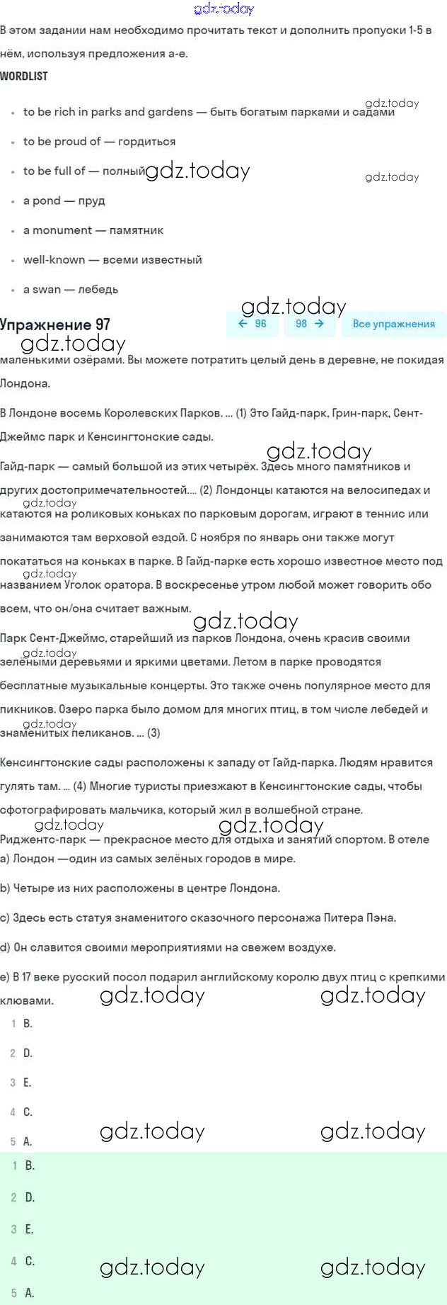 На страницах сайта gdz.today вы найдете учебный и вспомогательный материал, направленный на улучшения знаний школьной программы. ГДЗ - онлайн мир знаний Решение к Unit 3. Faces of London 97 Учебнику по Английскому языку для 5 класса Биболетова, Денисенко Титул Enjoy English 2015