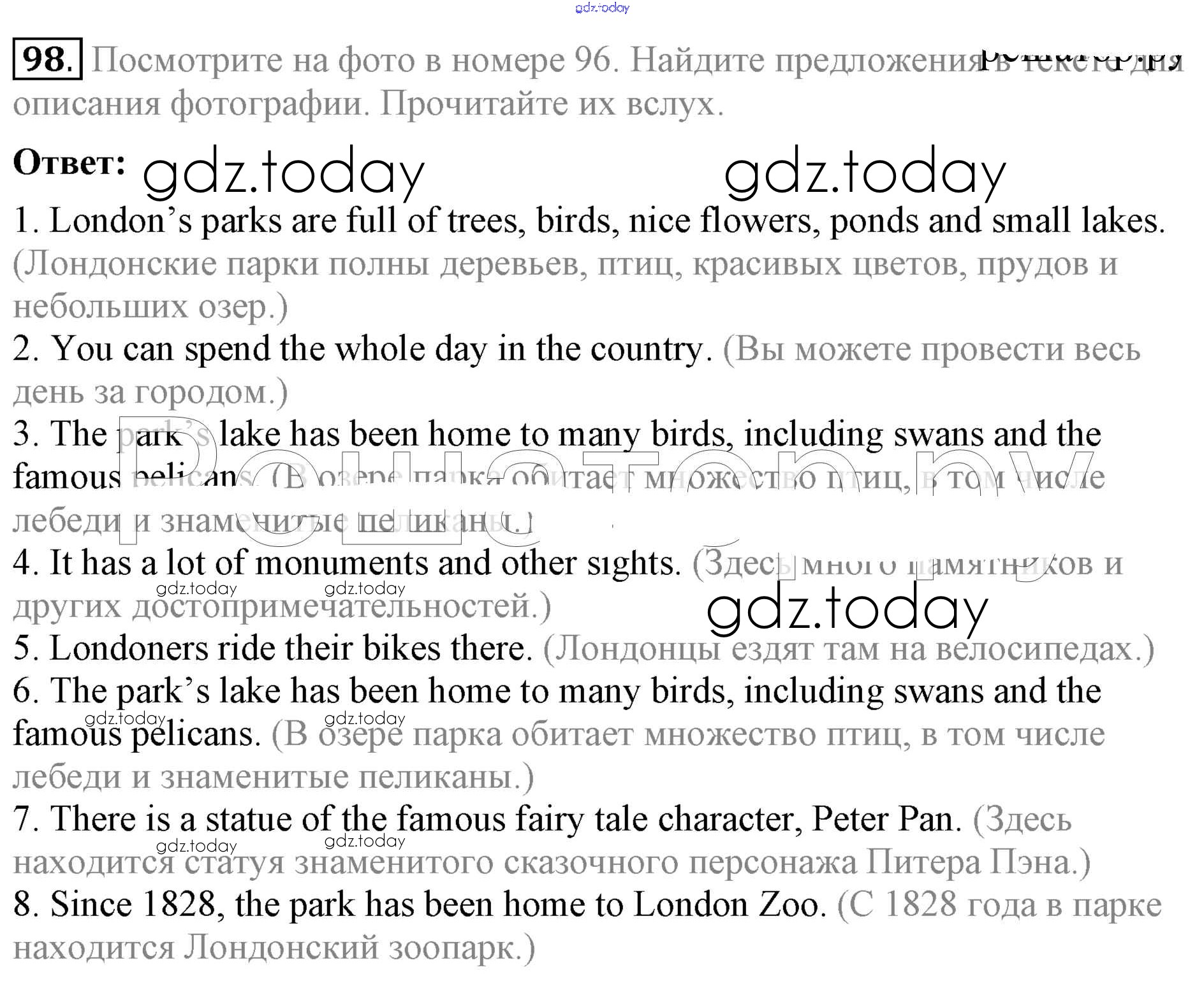 На страницах сайта gdz.today вы найдете учебный и вспомогательный материал, направленный на улучшения знаний школьной программы. ГДЗ - онлайн мир знаний Решение к Unit 3. Faces of London 98 Учебнику по Английскому языку для 5 класса Биболетова, Денисенко Титул Enjoy English 2015