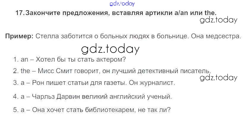 На страницах сайта gdz.today вы найдете учебный и вспомогательный материал, направленный на улучшения знаний школьной программы. ГДЗ - онлайн мир знаний Домашняя работа Решение к Unit 4. Learning more about each other 17 Учебнику по Английскому языку для 5 класса Биболетова, Денисенко Титул Enjoy English 2015