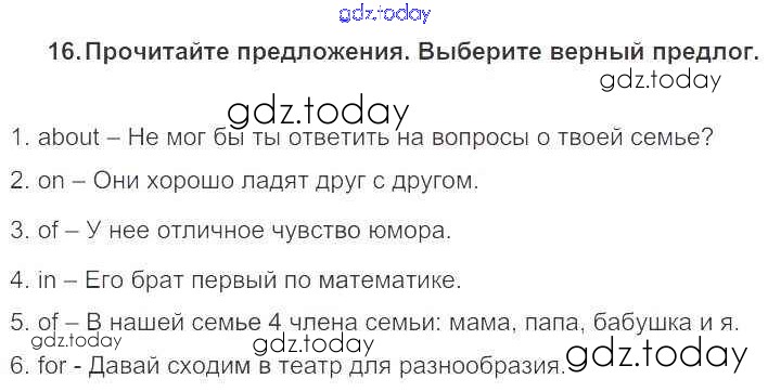 На страницах сайта gdz.today вы найдете учебный и вспомогательный материал, направленный на улучшения знаний школьной программы. ГДЗ - онлайн мир знаний Решение к Unit 4. Learning more about each other 16 Учебнику по Английскому языку для 5 класса Биболетова, Денисенко Титул Enjoy English 2015