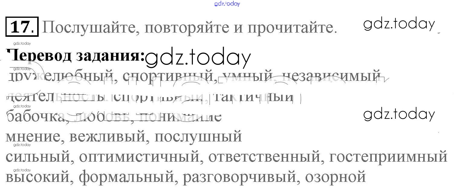 На страницах сайта gdz.today вы найдете учебный и вспомогательный материал, направленный на улучшения знаний школьной программы. ГДЗ - онлайн мир знаний Решение к Unit 4. Learning more about each other 17 Учебнику по Английскому языку для 5 класса Биболетова, Денисенко Титул Enjoy English 2015