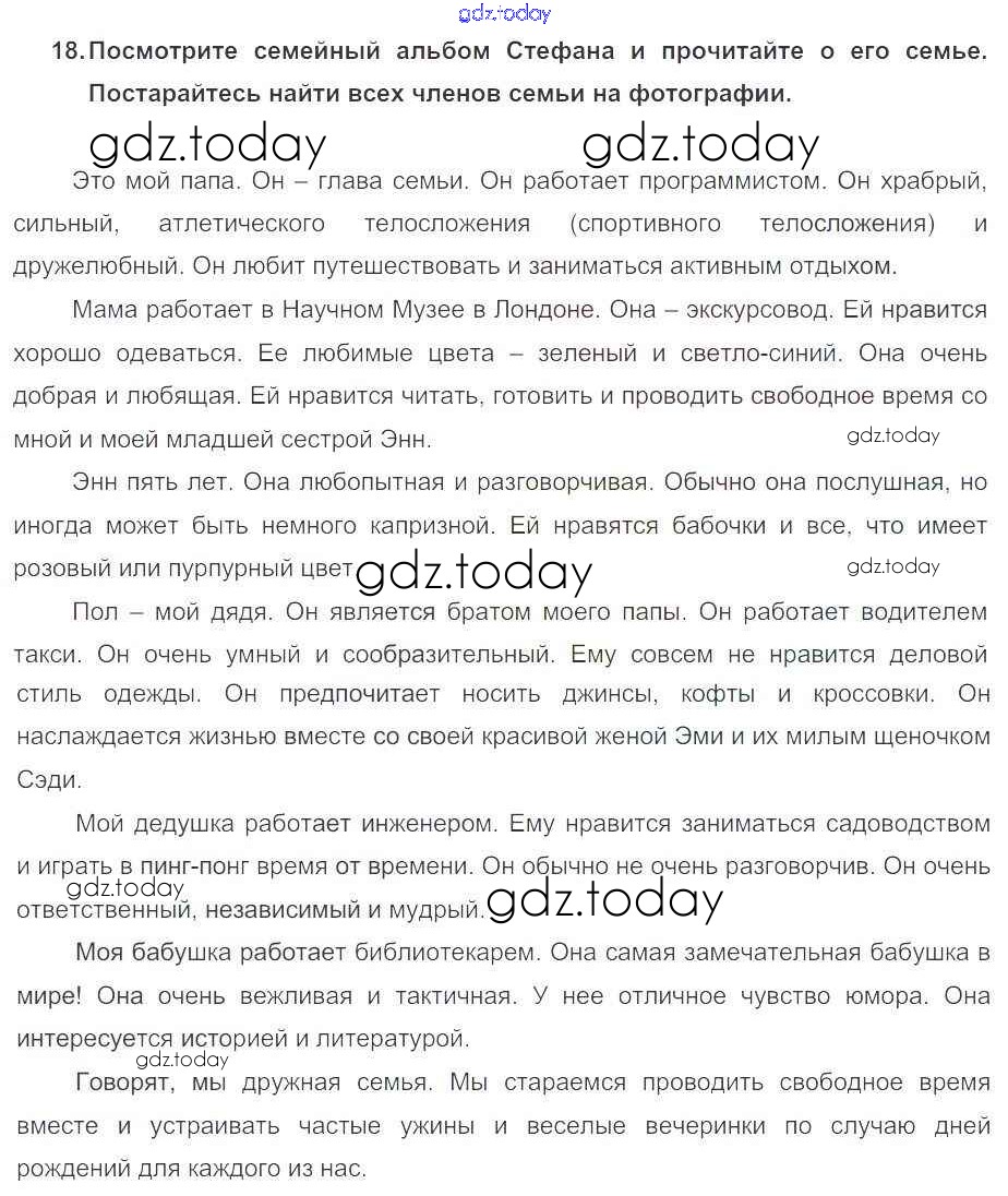На страницах сайта gdz.today вы найдете учебный и вспомогательный материал, направленный на улучшения знаний школьной программы. ГДЗ - онлайн мир знаний Решение к Unit 4. Learning more about each other 18 Учебнику по Английскому языку для 5 класса Биболетова, Денисенко Титул Enjoy English 2015