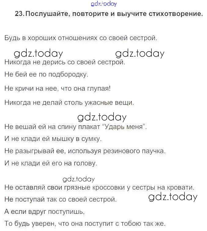 На страницах сайта gdz.today вы найдете учебный и вспомогательный материал, направленный на улучшения знаний школьной программы. ГДЗ - онлайн мир знаний Решение к Unit 4. Learning more about each other 23 Учебнику по Английскому языку для 5 класса Биболетова, Денисенко Титул Enjoy English 2015