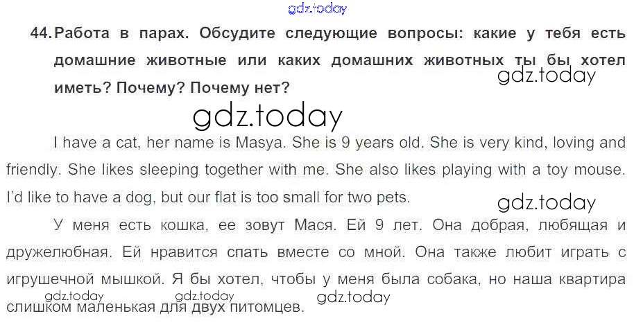 На страницах сайта gdz.today вы найдете учебный и вспомогательный материал, направленный на улучшения знаний школьной программы. ГДЗ - онлайн мир знаний Решение к Unit 4. Learning more about each other 44 Учебнику по Английскому языку для 5 класса Биболетова, Денисенко Титул Enjoy English 2015