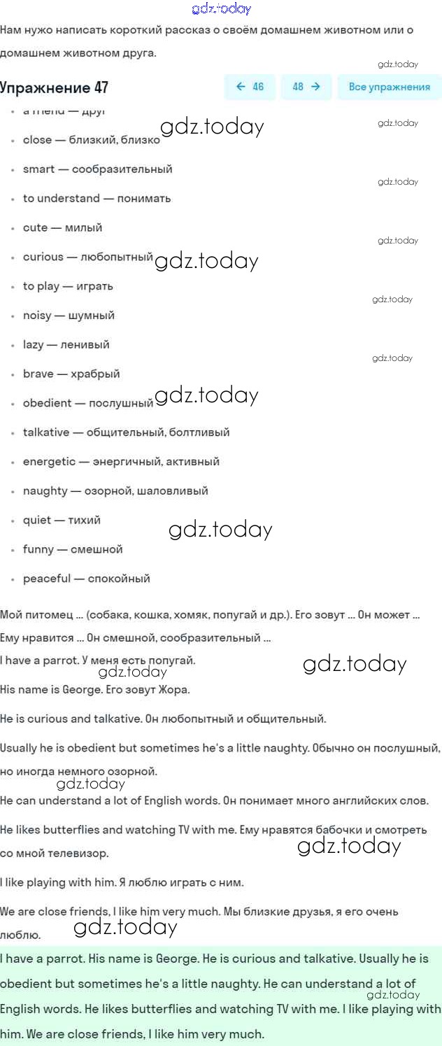 На страницах сайта gdz.today вы найдете учебный и вспомогательный материал, направленный на улучшения знаний школьной программы. ГДЗ - онлайн мир знаний Решение к Unit 4. Learning more about each other 47 Учебнику по Английскому языку для 5 класса Биболетова, Денисенко Титул Enjoy English 2015