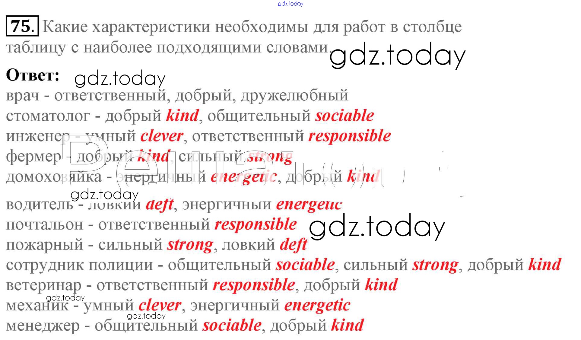 На страницах сайта gdz.today вы найдете учебный и вспомогательный материал, направленный на улучшения знаний школьной программы. ГДЗ - онлайн мир знаний Решение к Unit 4. Learning more about each other 75 Учебнику по Английскому языку для 5 класса Биболетова, Денисенко Титул Enjoy English 2015