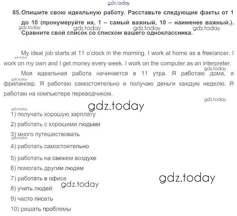 На страницах сайта gdz.today вы найдете учебный и вспомогательный материал, направленный на улучшения знаний школьной программы. ГДЗ - онлайн мир знаний Решение к Unit 4. Learning more about each other 85 Учебнику по Английскому языку для 5 класса Биболетова, Денисенко Титул Enjoy English 2015