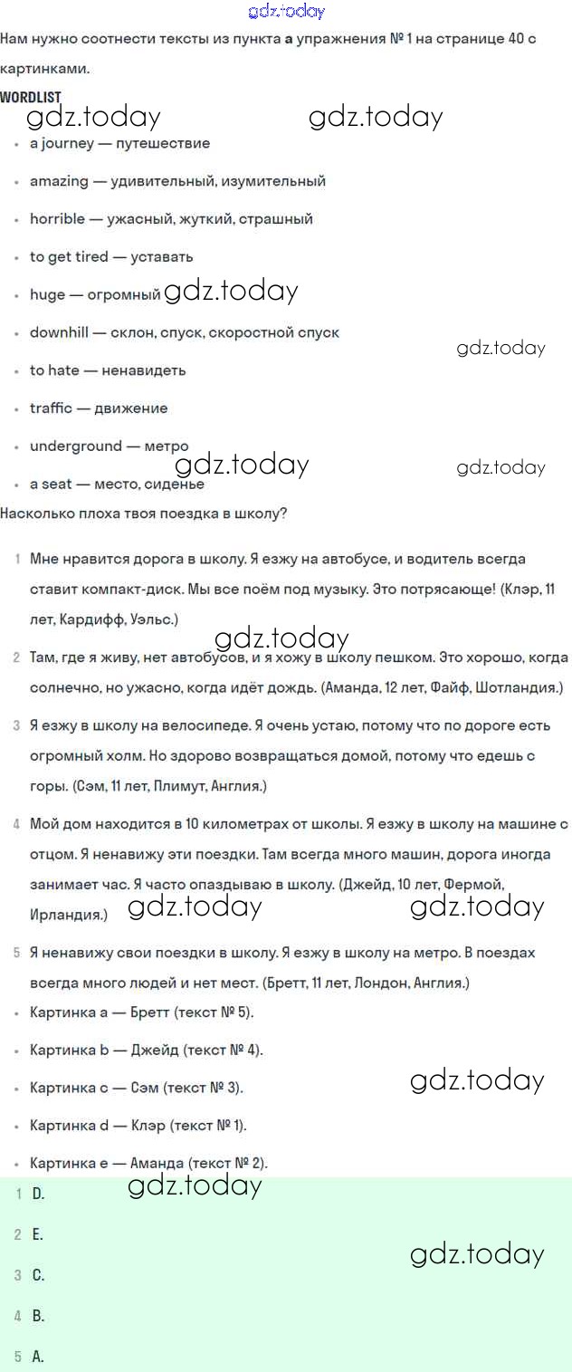 На страницах сайта gdz.today вы найдете учебный и вспомогательный материал, направленный на улучшения знаний школьной программы. ГДЗ - онлайн мир знаний Страницы (решение) 40 Учебнику по Английскому языку для 5 класса Комарова, Ларионова Русское слово Инновационная школа 2021
