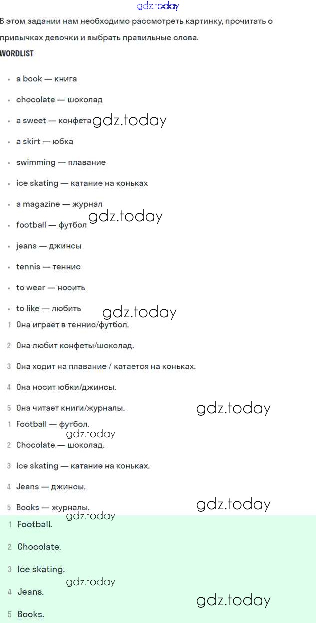На страницах сайта gdz.today вы найдете учебный и вспомогательный материал, направленный на улучшения знаний школьной программы. ГДЗ - онлайн мир знаний Страницы (решение) 55 Учебнику по Английскому языку для 5 класса Комарова, Ларионова Русское слово Инновационная школа 2021