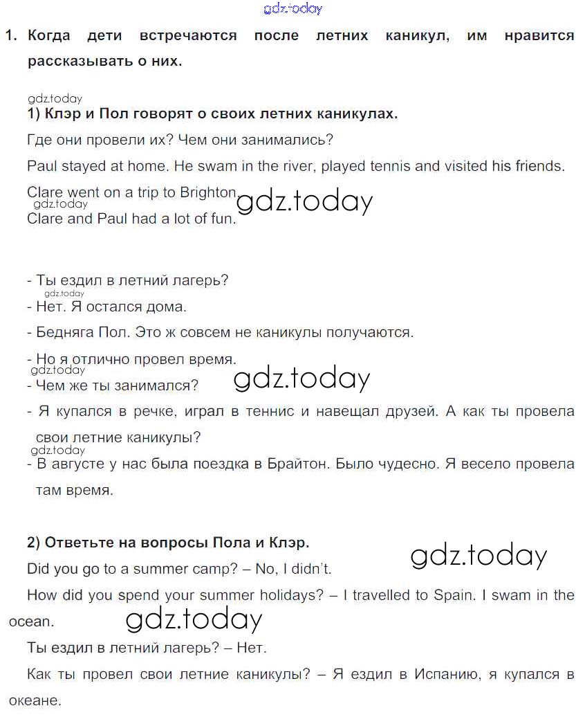 На страницах сайта gdz.today вы найдете учебный и вспомогательный материал, направленный на улучшения знаний школьной программы. ГДЗ - онлайн мир знаний Lesson 3. How I spent my summer holidays Решение к Unit 1. Let's make friends! 1 Учебнику по Английскому языку для 5 класса Кузовлев, Лапа Просвещение УМК 2015