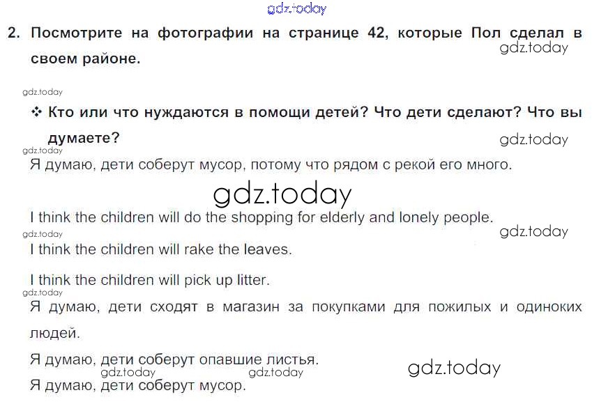 На страницах сайта gdz.today вы найдете учебный и вспомогательный материал, направленный на улучшения знаний школьной программы. ГДЗ - онлайн мир знаний Lesson 1. How do you help your neighbourhood? Решение к Unit 3. We must help people around 2 Учебнику по Английскому языку для 5 класса Кузовлев, Лапа Просвещение УМК 2015