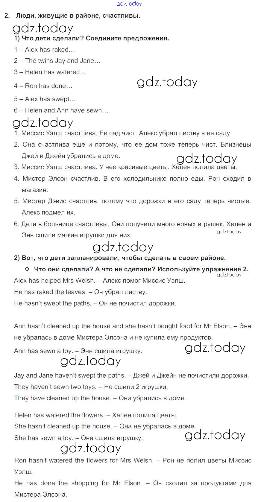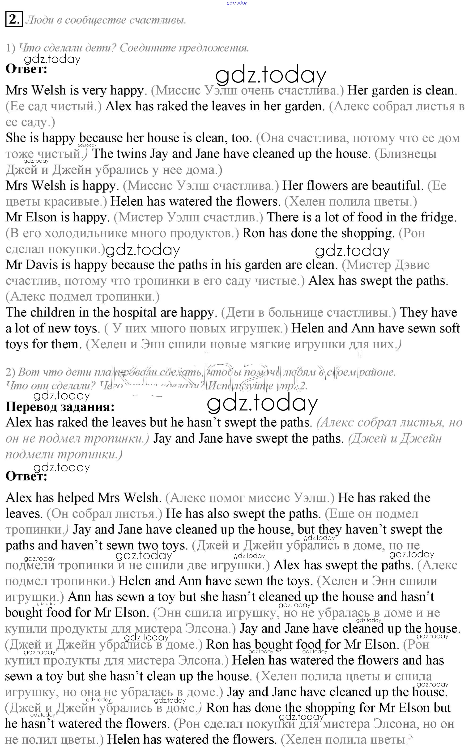На страницах сайта gdz.today вы найдете учебный и вспомогательный материал, направленный на улучшения знаний школьной программы. ГДЗ - онлайн мир знаний Lesson 2. What have you done to help people? Решение к Unit 3. We must help people around 2 Учебнику по Английскому языку для 5 класса Кузовлев, Лапа Просвещение УМК 2015