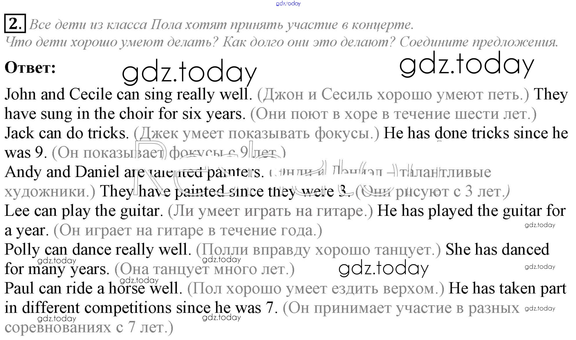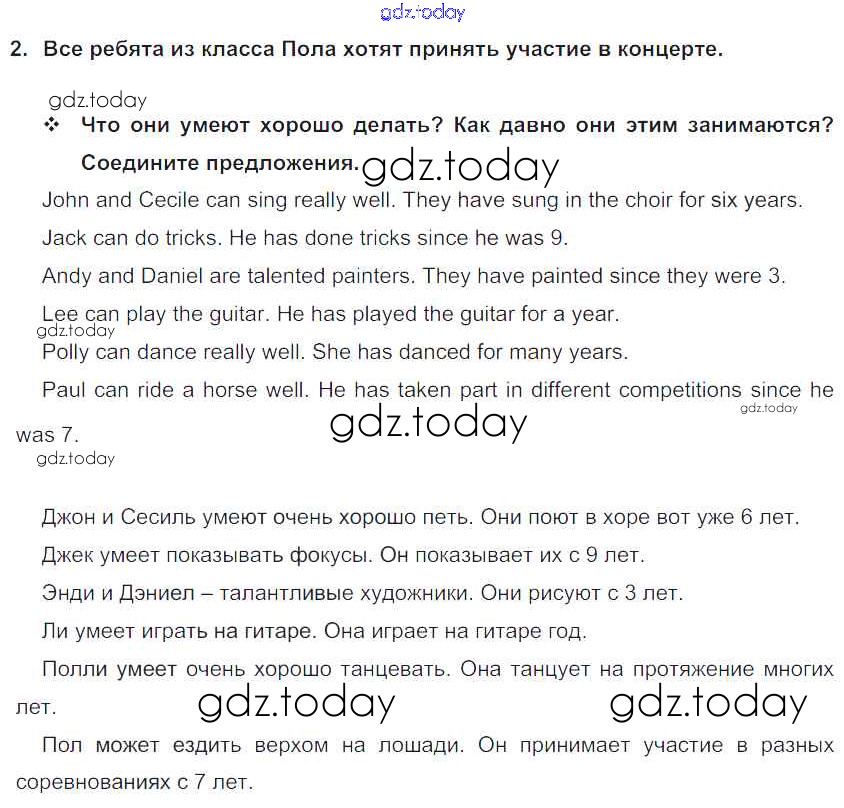 На страницах сайта gdz.today вы найдете учебный и вспомогательный материал, направленный на улучшения знаний школьной программы. ГДЗ - онлайн мир знаний Lesson 3. How long have you played the violin? Решение к Unit 3. We must help people around 2 Учебнику по Английскому языку для 5 класса Кузовлев, Лапа Просвещение УМК 2015