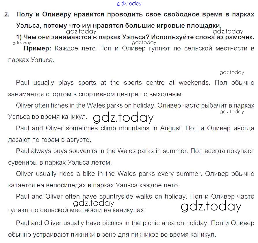 На страницах сайта gdz.today вы найдете учебный и вспомогательный материал, направленный на улучшения знаний школьной программы. ГДЗ - онлайн мир знаний Lesson 1. We like Wales! Решение к Unit 4. Every day and at weekends 2 Учебнику по Английскому языку для 5 класса Кузовлев, Лапа Просвещение УМК 2015