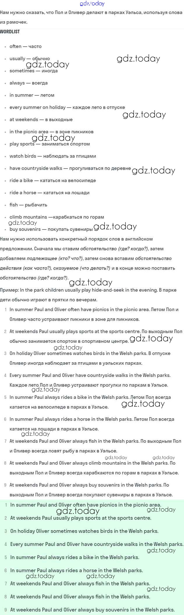 Ответы к Lesson 1. We like Wales! Решение к Unit 4. Every day and at weekends 2 Учебнику по Английскому языку для 5 класса Кузовлев, Лапа Просвещение УМК 2015