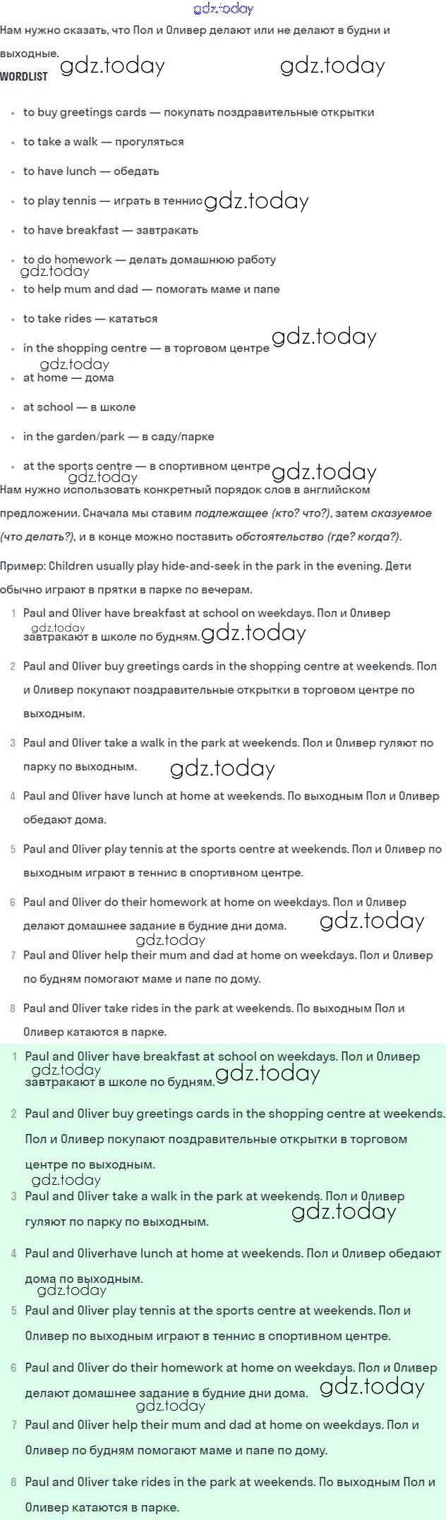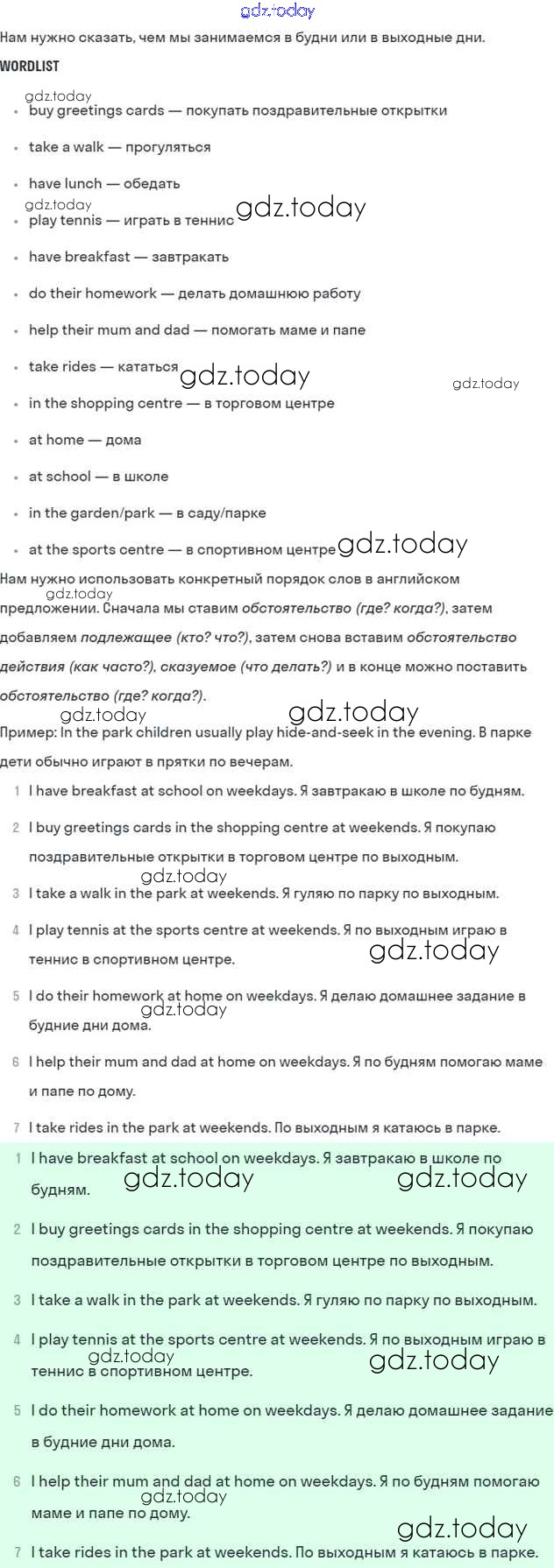 Решение к Unit 4. Every day and at weekends