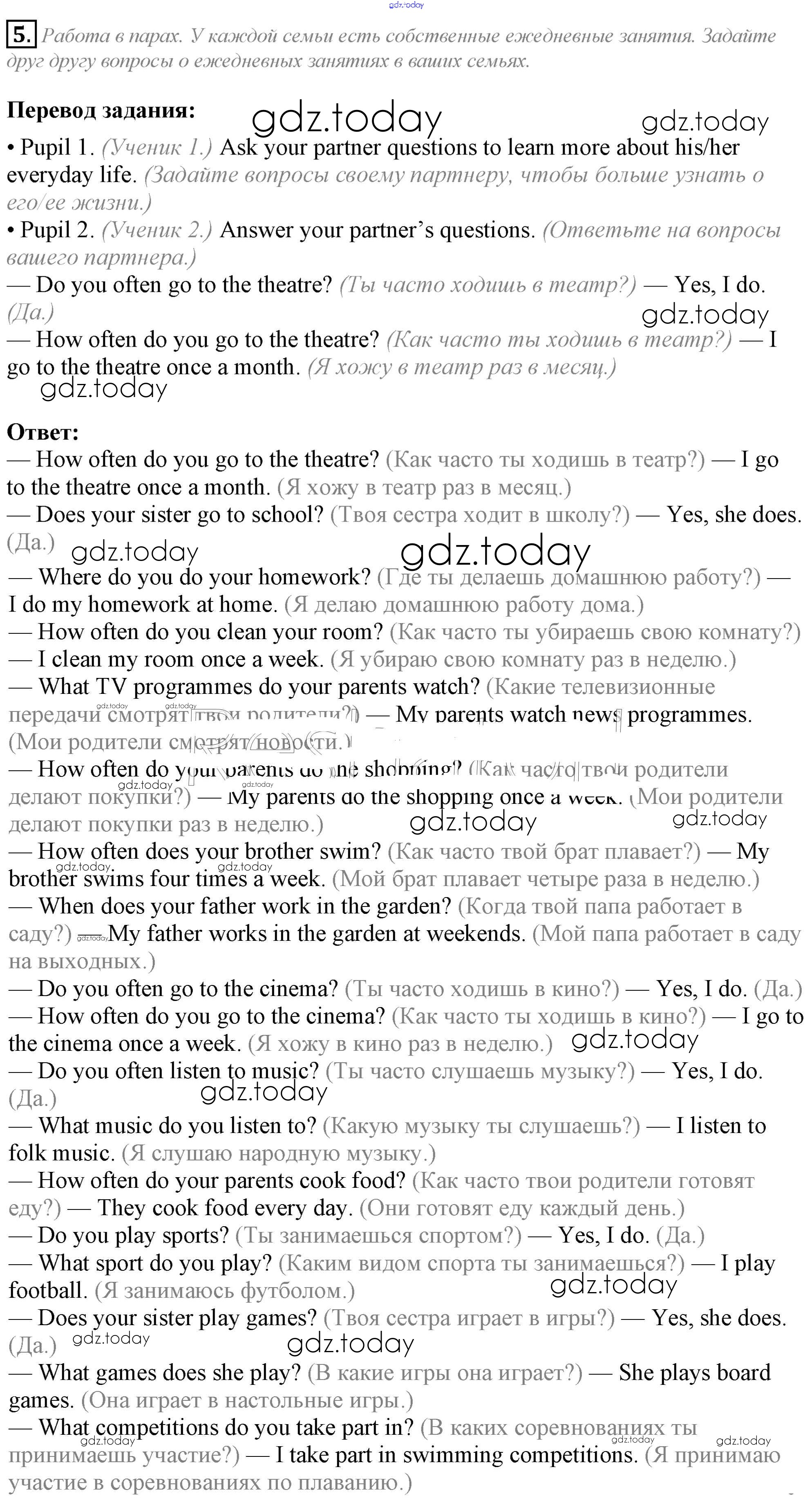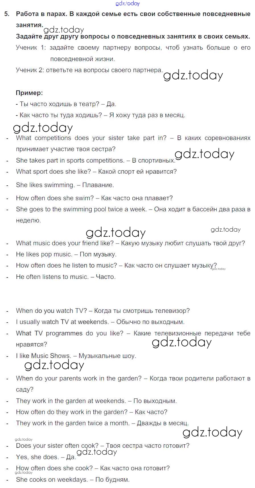 Ответы к Lesson 1. We like Wales! Решение к Unit 4. Every day and at weekends 5 Учебнику по Английскому языку для 5 класса Кузовлев, Лапа Просвещение УМК 2015