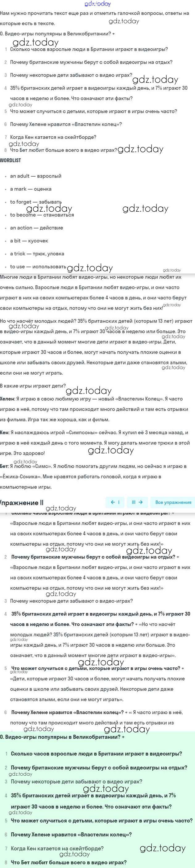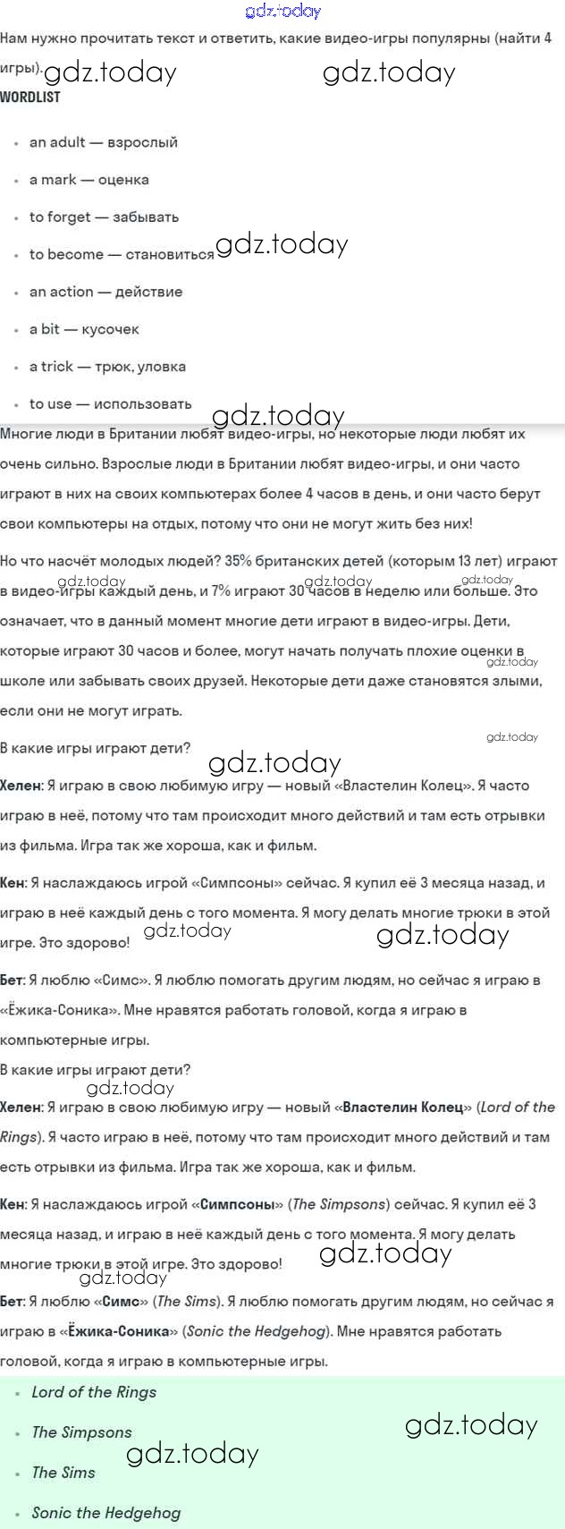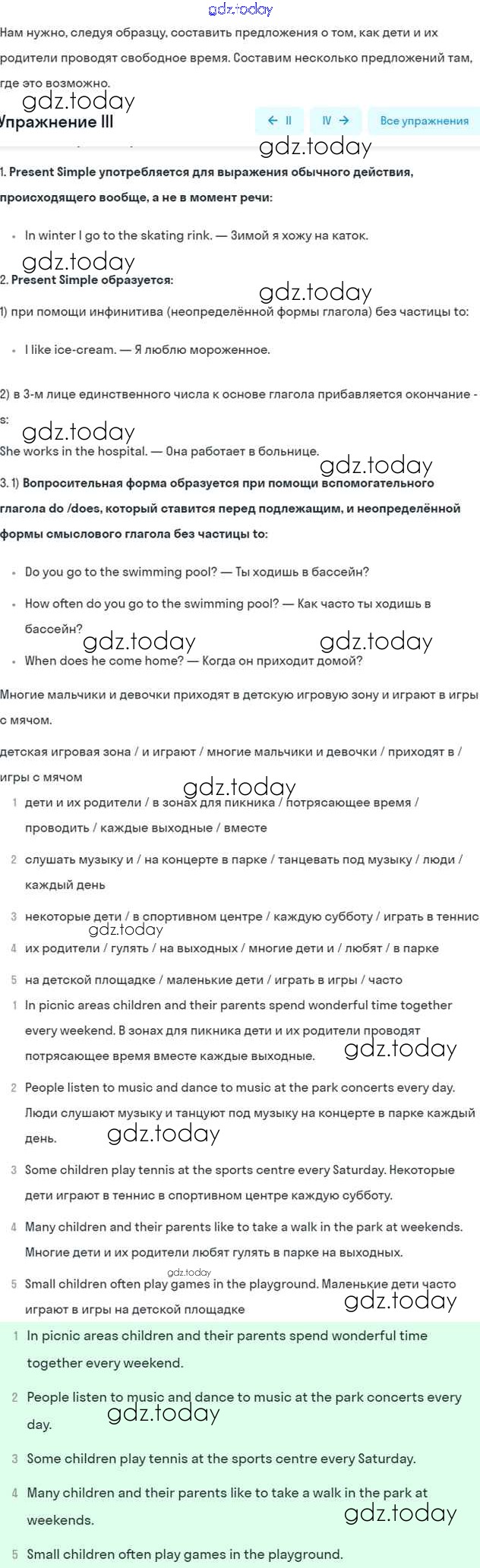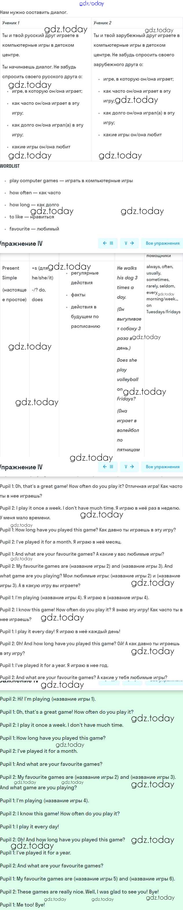 Решение к Unit 4. Every day and at weekends