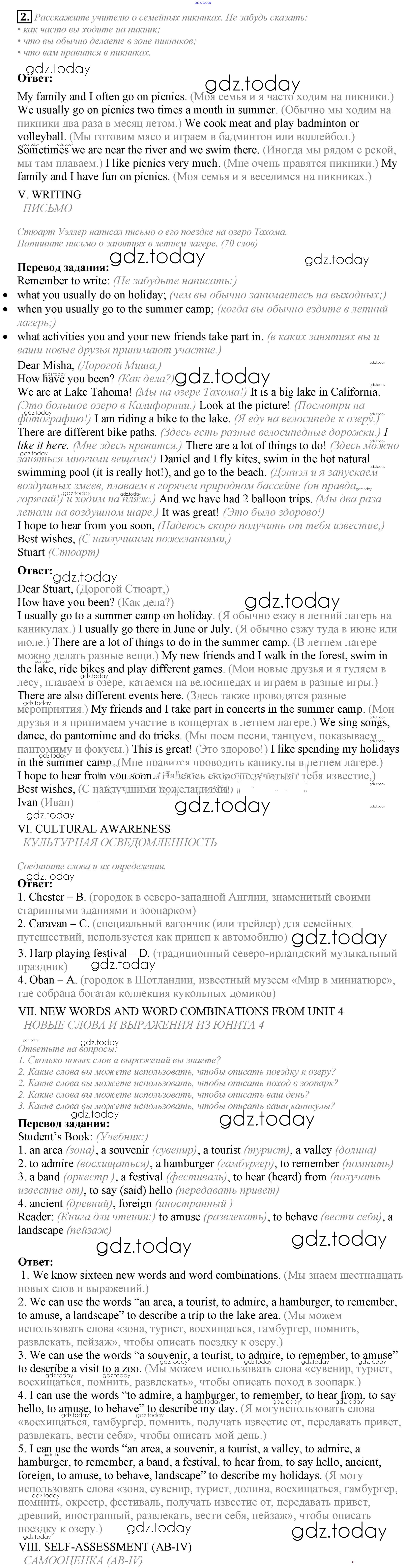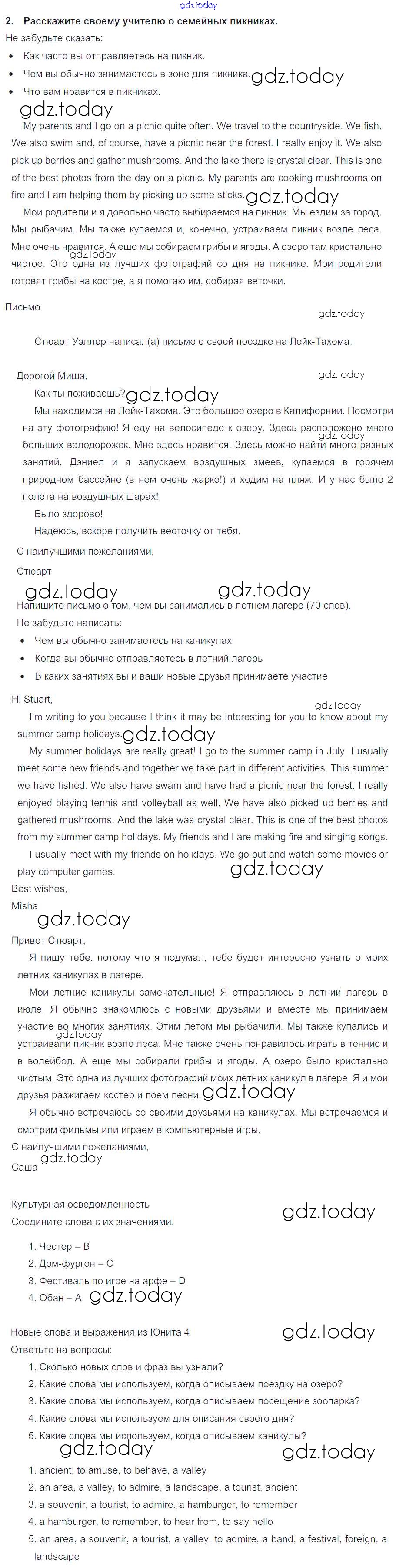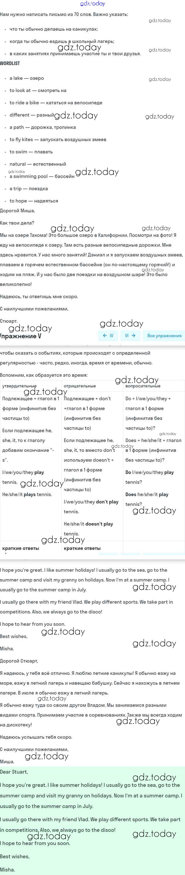 Ответы к Lesson 6-7. Test yourself Решение к Unit 4. Every day and at weekends 2 Учебнику по Английскому языку для 5 класса Кузовлев, Лапа Просвещение УМК 2015