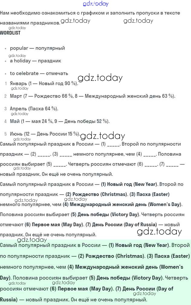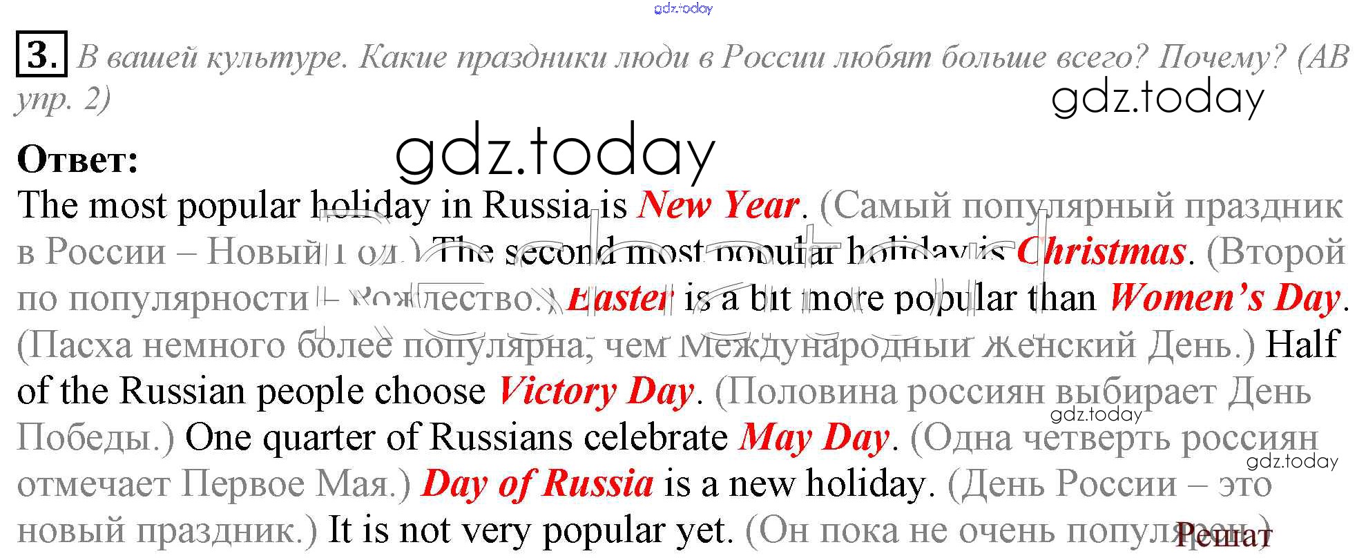 На страницах сайта gdz.today вы найдете учебный и вспомогательный материал, направленный на улучшения знаний школьной программы. ГДЗ - онлайн мир знаний Lesson 1. What is your favourite holiday? Решение к Unit 5. My favourite celebrations 3 Учебнику по Английскому языку для 5 класса Кузовлев, Лапа Просвещение УМК 2015