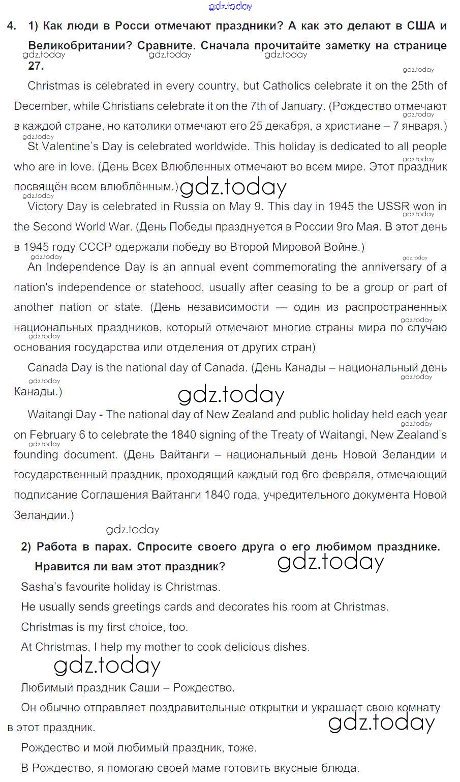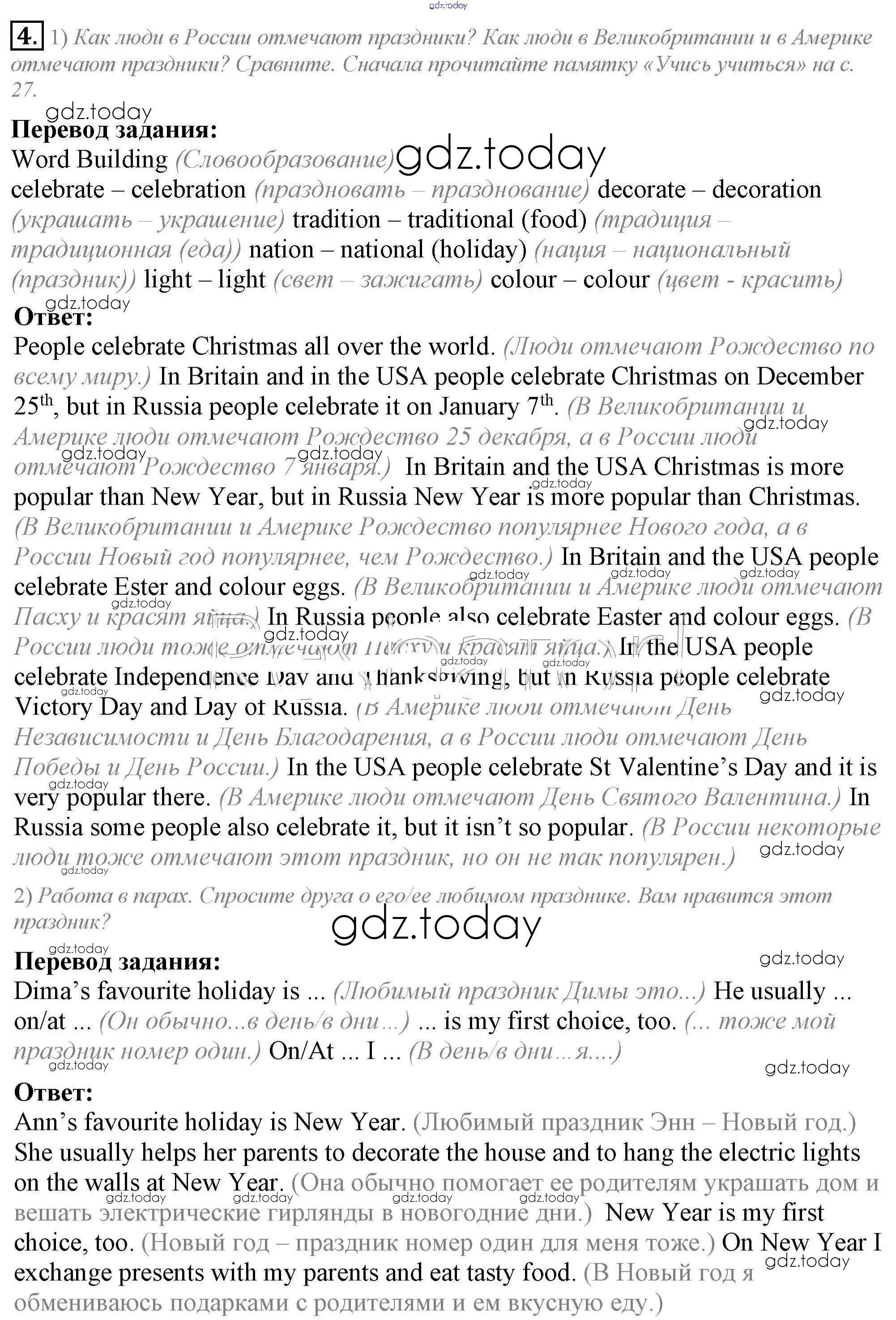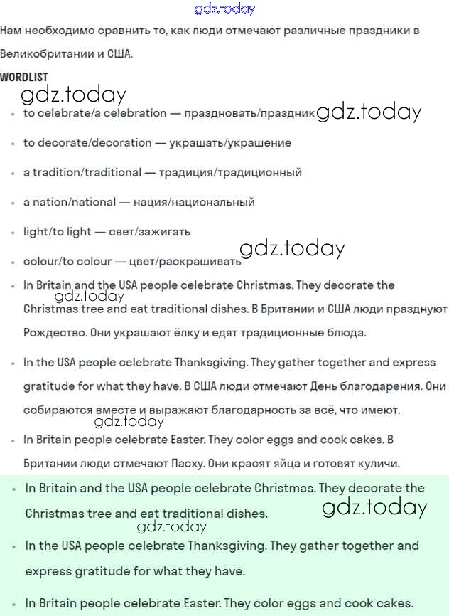 На страницах сайта gdz.today вы найдете учебный и вспомогательный материал, направленный на улучшения знаний школьной программы. ГДЗ - онлайн мир знаний Lesson 1. What is your favourite holiday? Решение к Unit 5. My favourite celebrations 4 Учебнику по Английскому языку для 5 класса Кузовлев, Лапа Просвещение УМК 2015