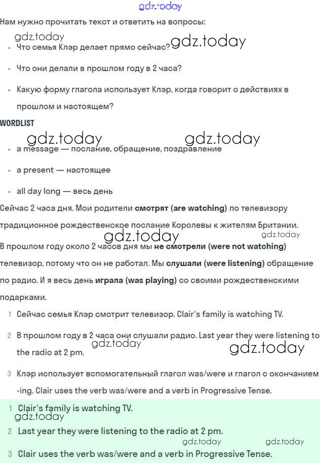 На страницах сайта gdz.today вы найдете учебный и вспомогательный материал, направленный на улучшения знаний школьной программы. ГДЗ - онлайн мир знаний Lesson 2. I was decorating the Christmas tree for two hours Решение к Unit 5. My favourite celebrations 1 Учебнику по Английскому языку для 5 класса Кузовлев, Лапа Просвещение УМК 2015