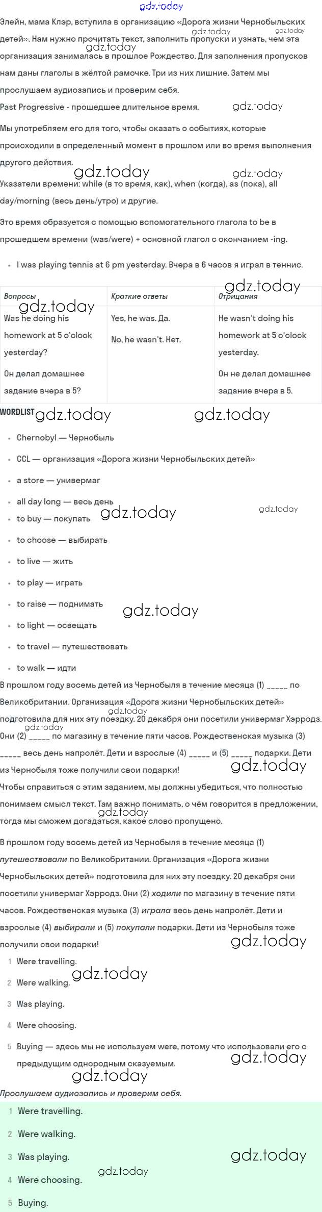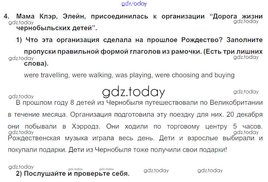 На страницах сайта gdz.today вы найдете учебный и вспомогательный материал, направленный на улучшения знаний школьной программы. ГДЗ - онлайн мир знаний Lesson 2. I was decorating the Christmas tree for two hours Решение к Unit 5. My favourite celebrations 4 Учебнику по Английскому языку для 5 класса Кузовлев, Лапа Просвещение УМК 2015