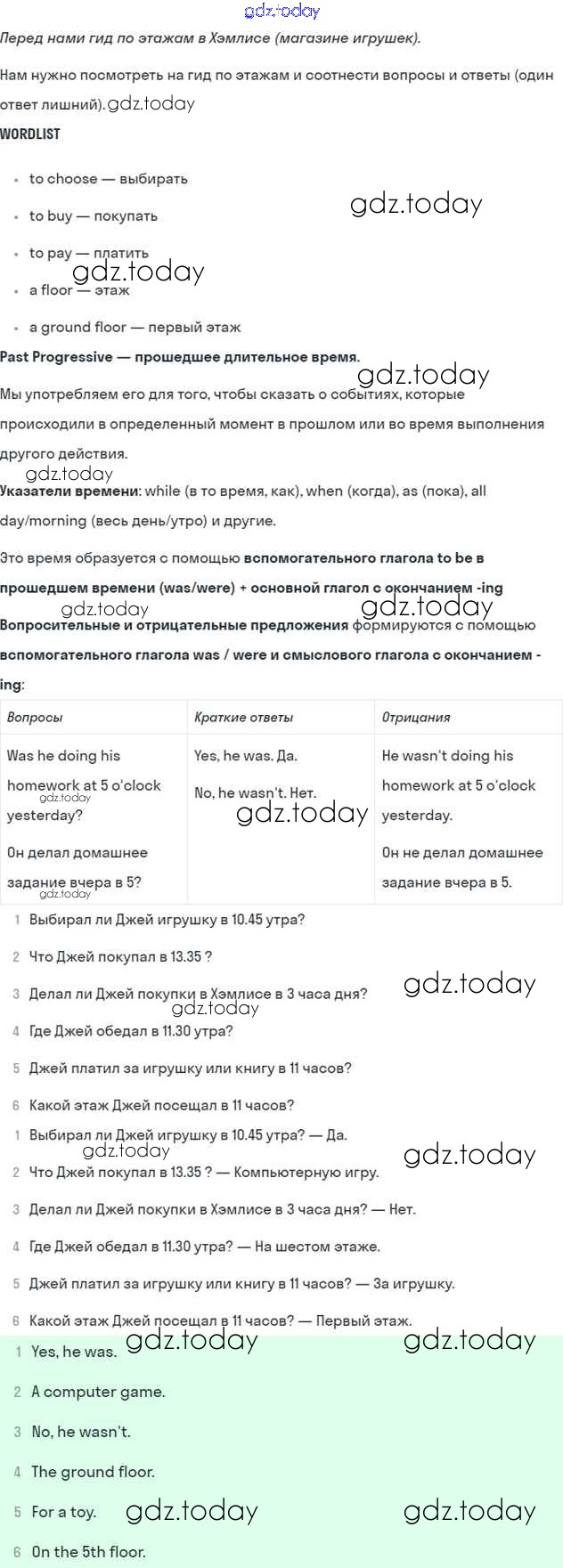 На страницах сайта gdz.today вы найдете учебный и вспомогательный материал, направленный на улучшения знаний школьной программы. ГДЗ - онлайн мир знаний Lesson 3. What were you doing at 5 pm yesterday? Решение к Unit 5. My favourite celebrations 2 Учебнику по Английскому языку для 5 класса Кузовлев, Лапа Просвещение УМК 2015