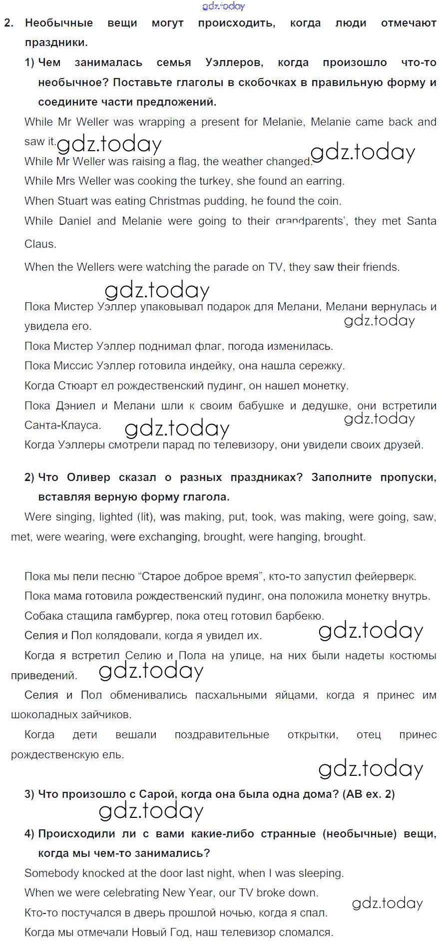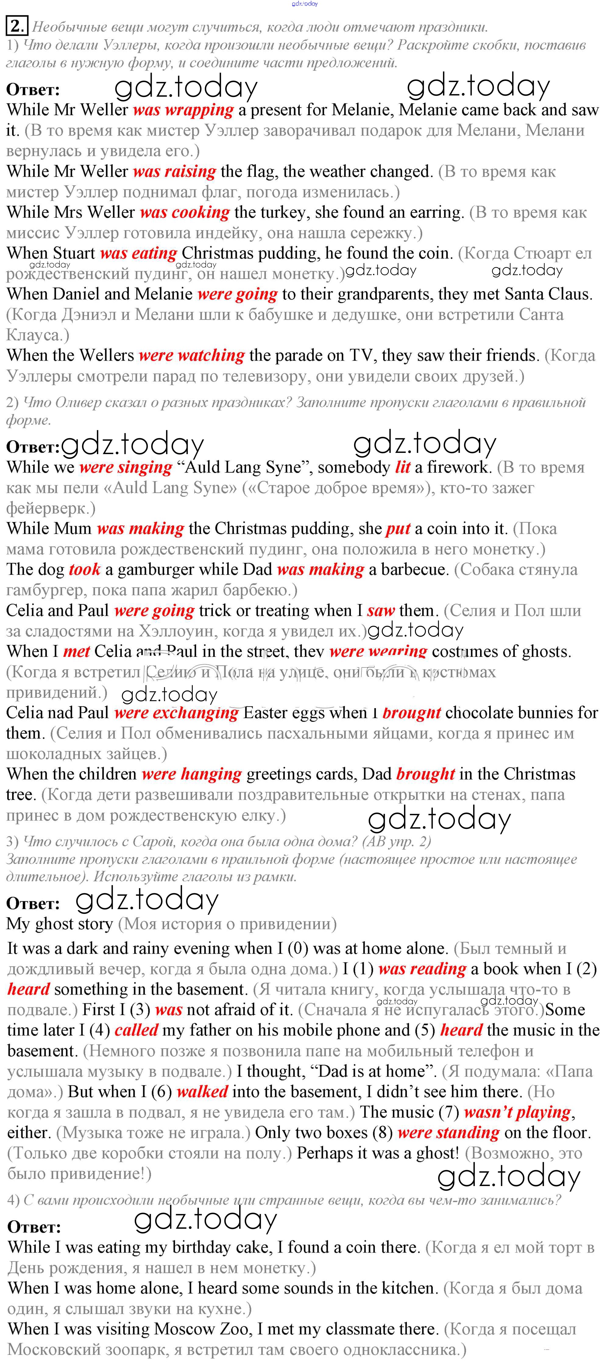 На страницах сайта gdz.today вы найдете учебный и вспомогательный материал, направленный на улучшения знаний школьной программы. ГДЗ - онлайн мир знаний Lesson 4. While we were celebrating… Решение к Unit 5. My favourite celebrations 2 Учебнику по Английскому языку для 5 класса Кузовлев, Лапа Просвещение УМК 2015