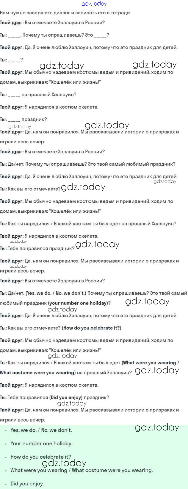 На страницах сайта gdz.today вы найдете учебный и вспомогательный материал, направленный на улучшения знаний школьной программы. ГДЗ - онлайн мир знаний Lesson 5. Is it your number one holiday? Решение к Unit 5. My favourite celebrations 3 Учебнику по Английскому языку для 5 класса Кузовлев, Лапа Просвещение УМК 2015